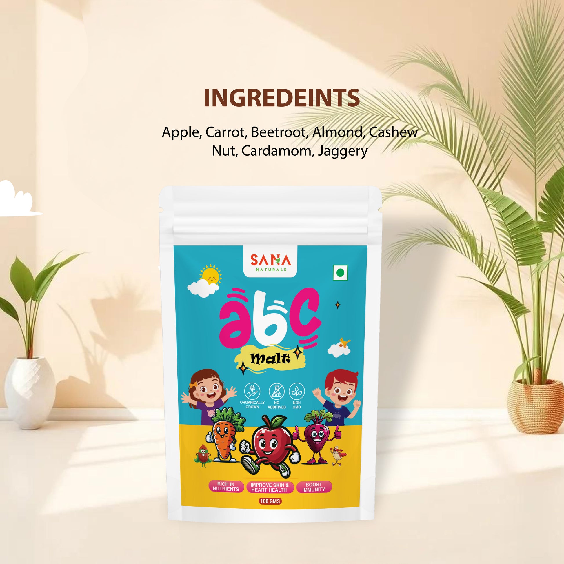 As a mother you want a natural health drink that does more than just fill your child’s tummy. It should nourish, energize and protect them from within. SANA NATURALS Apple Beetroot Carrot Malt is crafted in small batches with love, using only natural ingredients like apple, beetroot, carrot, almonds, cashews, cardamom and jaggery. No preservatives. No artificial flavors. Just pure, wholesome goodness.